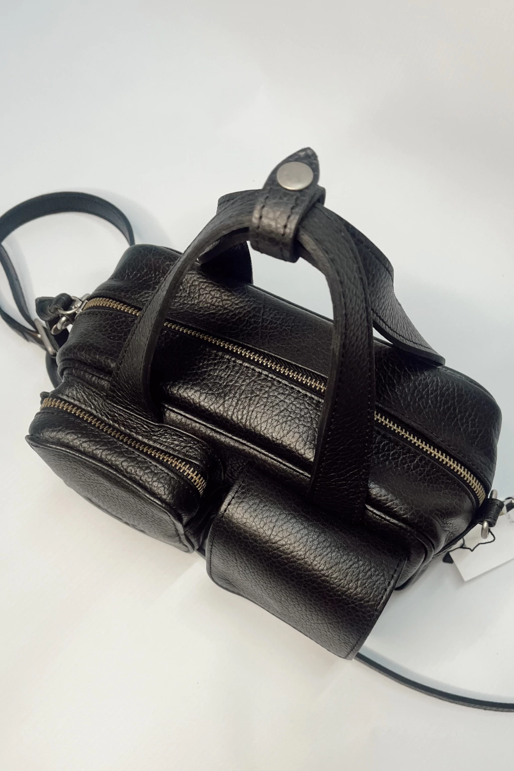 Confeccionada en cuero 100% genuino, ofrece una manija corta para llevar en mano y una correa larga desmontable y regulable para usar al hombro o cruzada.